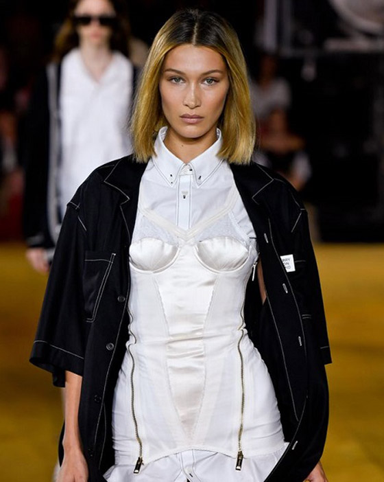 3- الكورسيت: اتجاه آخر للموضة لم ينتشر على نحو واسع، ورغم أنه لم يكن اتجاهاً جديداً في الأصل، إلا أن بعض العارضات ومن بينهن بيلا حديد حاولن الترويج له هذا العام.