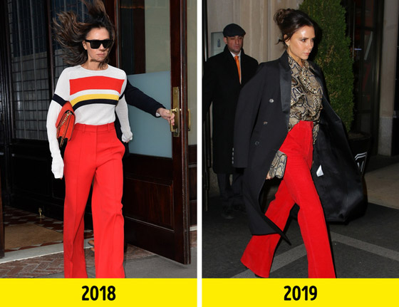 4. فيكتوريا بيكهام: مغنية البوب البريطانية تبدو دائماً رائعة، لا ترى خطأ في ارتداء نفس الملابس مرتين وهي تعرف كيفية إعادة استخدامها بشكل جيد.