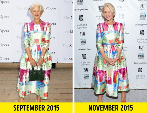 5. هيلين ميرين: يمكن لممثلة هوليود أن تفعل ما تشاء، ارتدت هيلين الفستان نفسه بعد شهرين فقط. ربما قد أحبت حقًا فستان دولتشي آند غابانا.