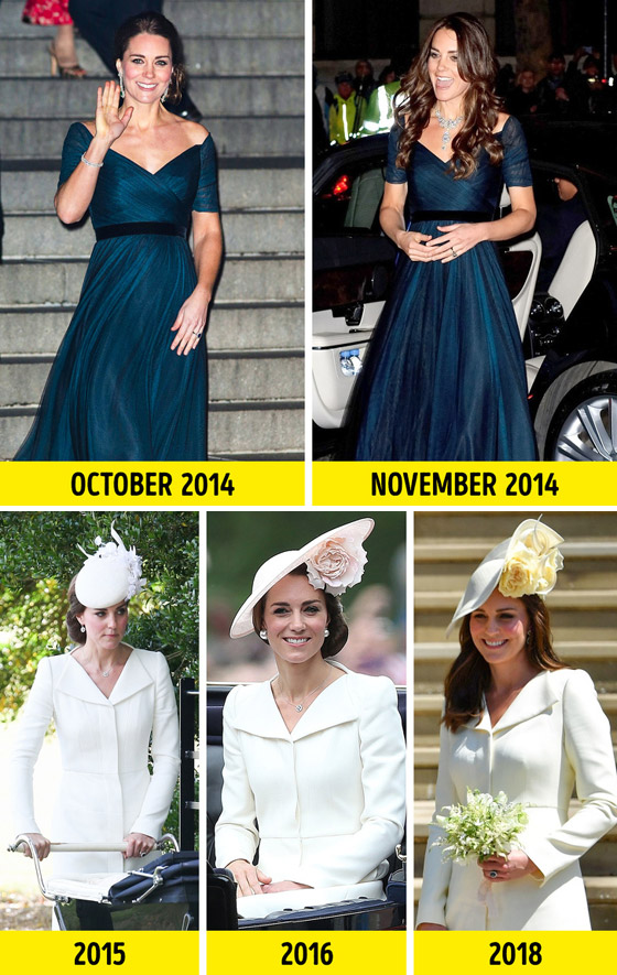 6. كيت ميدلتون: لقد أثبتت دوقة كامبريدج للعالم وبريطانيا بالفعل أنها شخصية برجماتية. تحب الملابس التي ليست من ماركات باهظة الثمن، وتلبس الأشياء مرتين أو ثلاثة. حتى أنها ترتدي ثيابها عدة مرات، فقط تغير إكسسواراتها وتسريحة شعرها.