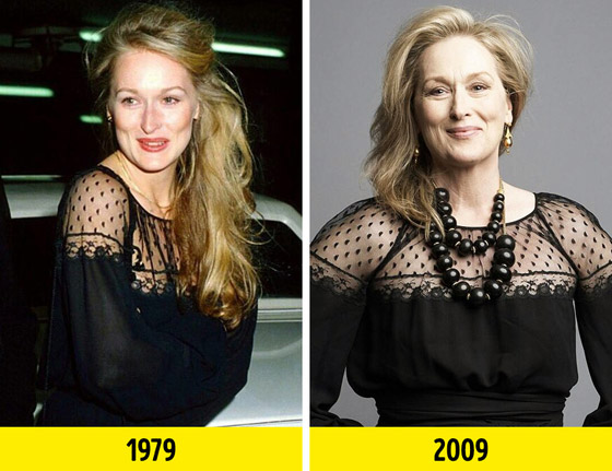 8. ميريل ستريب: في عام 2009، ظهرت ميريل ستريب في حفل توزيع جوائز BAFTA مرتدية فستانًا ارتدته من قبل في حفل أوسكار عام 1979. ورغم المدة الطويلة لكن الفستان الذي يبلغ من العمر 30 عامًا بدا عليها بشكل أفضل من المرة الأولى التي ارتدتها فيها.