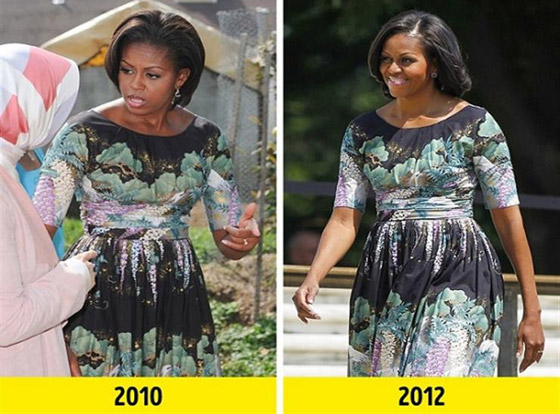 9 ميشيل أوباما: كانت السيدة الأولى السابقة للولايات المتحدة تبدو رائعة دائمًا، حتى عندما كانت ترتدي الفستان نفسه مرتين، في سبتمبر 2010، ظهرت ميشيل في ثوب أسود مع نقوشات الزهور في حدث بنيويورك، وبعد عامين ارتدت الفستان نفسه خلال زيارة رسمية إلى أرلينغتون.