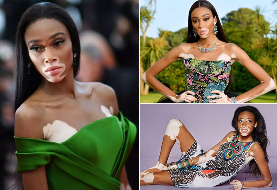 2. ويني هارلو: أول عارضة مصابة بالبهاق: أيضاً من كان يتوقع أن تنجح عارضة أزياء مصابة بالبهاق منذ طفولتها، وهو المرض الجلدي الذي يتسبب في تغير لون أجزاء من الجلد، ويحيلها إلى اللون الأبيض. لكن العارضة الكندية ويني هارلو، استطاعت أن تكون أحد الأسماء البارزة في مجال عرض الأزياء على مستوى العالم، على الرغم من إصابتها بالبهاق. وتروي هارلو الكثير من القصص حول طفولتها، وكيف كانت زميلاتها في المدرسة حريصاتٍ على التقاط الصور معها ونعتها بالخارقة، بسبب قدرتها على التعايش مع إصابتها بالبهاق. لكن من دون أن يهز هذا الأمر ثقتها بنفسها، على الرغم من كل الضغوط التي كانت تتعرض لها من قبل الأشخاص المحيطين بها.