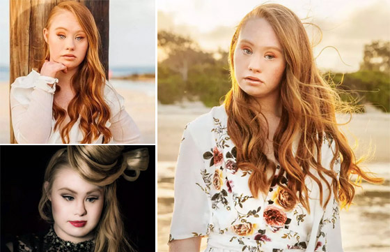 4. مادلين ستيورات: أول عارضة مصابة بتملازمة داون: ضربت الأسترالية مادلين ستيوارت مثلاً في المثابرة من أجل تحقيق الأحلام. بعد أن صارت أول عارضة أزياء في العالم مصابة بمتلازمة داون. وهي حلمت أن تقتحم مجال عرض الأزياء منذ كانت طفلة، حين حضرت بصحبة والدتها. وتمكنت ستيورات من إنقاص وزنها بمقدار عشرين كيلوغراماً لتتمكن من العمل في مجال الأزياء. بعد أن خطت خطوتها الأولى في هذا المجال بعرض مجموعةٍ من فساتين الزفاف لصالح أحد المتاجر، لتنتشر صورها وتصبح وجهاً دعائياً لمجموعةٍ من بيوت الأزياء.