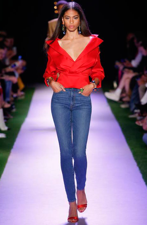 1. أحمر قرمزي: جريء، مشرق، دافئ و حيوي، هذا اللون الأحمر الناري ينضح بالثقة ويجعل بلا شك إطلالتك ملفتة للأنظار، هذا اللون يتماشى بشكل جيد مع مختلف ظلال الدنيم الأزرق في خزانتك.
