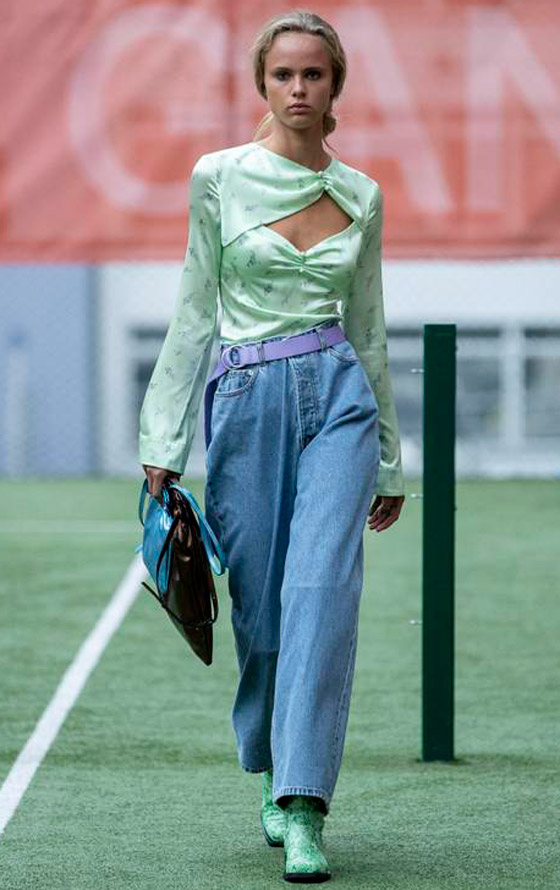2. أخضر الفستق: أصبح لون الأخضر الفستقي رائجًا منذ عدة مواسم حتى الآن ولا يظهر أي علامات على التباطؤ، وباعتباره من الدرجات الهادئة والمنعشة يمكنك اعتماده كلون محايد وتنسيقه مع مختلف قطع الدنيم خلال الموسم المقبل.