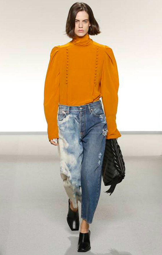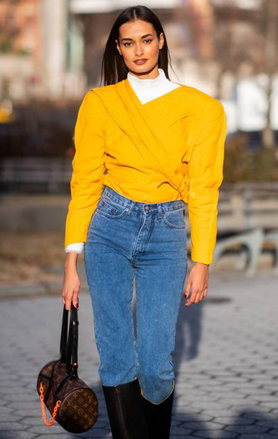 6. الزعفران: يضيف هذا الللون الدافئ المائل إلى البرتقالي لمسة متفائلة وحيوية إلى أي مظهر، وقد شوهد في عدد كبير من الأقمشة على منصات الربيع من الكروشيه إلى الساتان، ويبدو لون الزعفران جذابًا عند تنسيقه مع الدنيم الداكن.