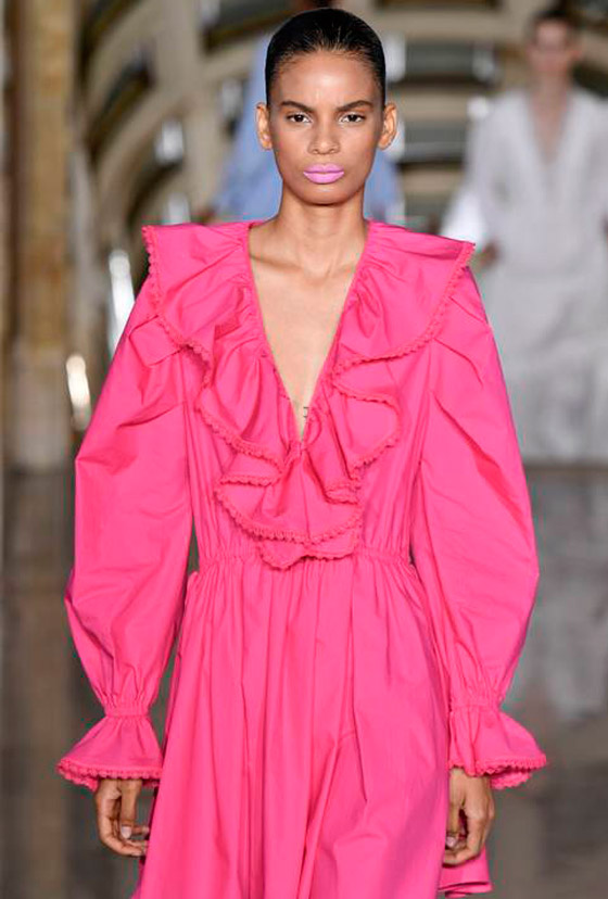 8. الفوشيا: شوهد هذا اللون على كل شيء بدءًا من الفساتين الغنية بالكشكشة إلى سترات البلايزر ذات الأكمام المنتقخة، ومن المقرر أن يهيمن ظل الفوشيا على مشهد ستايل الشارع في موسمي الربيع والصيف المقبلين. ويضمن لك هذا اللون اللامع النابض بالحيوية الحصول على مظهر ملفت للأنظار، لذا جرّبي تنسيق بلوزة أو سترة أنيقة في ظل الفوشيا مع بنطلون جينز أزرق فاتح.