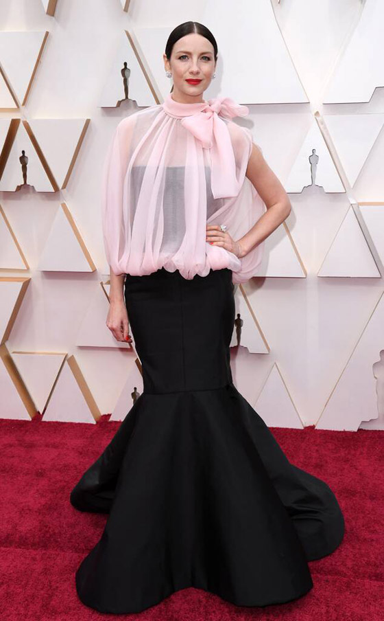 11- كايتريونا بالفي: لم تكن اطلالة كايتريونا موفقة في حفل اوسكار 2020 فقد ارتدت فستانا غير متناسق، كان القسم العلوي منه شفافا بلون وردي فاتح، والقسم السفلي فضفاض بلون اسود وبدا كما قال احد نقاد الموضة وكأنه حيوانا بحريا ضخما وغريبا!