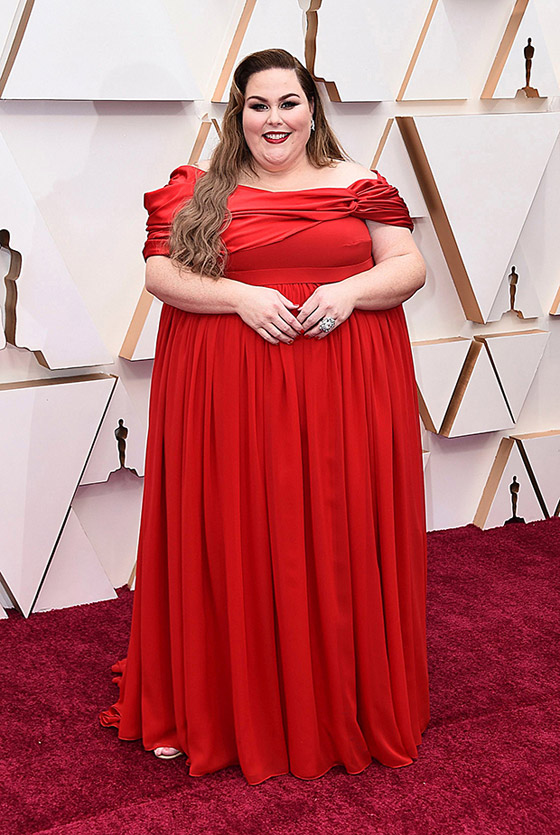 13- كريسي مينز: أبهرت نجمة هوليوود كريسي ميتز البالغة من العمر 39 سنة، ابهرت الجميع بتألقها في حفل جوائز الأوسكار 2020 حيث ارتدت فستانا رائعا مكشوف علي الكتفين.باللون الأحمر القاني واختارت احمر شفاه بنفس اللون أبرز جمالها وبدت تفيض انوثة. وأثبتت ان الاناقة والجمال لا تقتصرا على الاجسام النحيلة فقط وان الجسم الممتلئ يمكن ان يبدو أنثويا ويلفت الأنظار.
