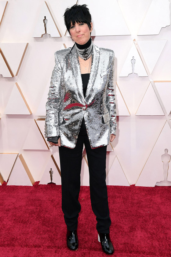 14- ديانا وارن: اطلالة غير موفقة بالمرة لكاتبة الأغاني ديانا وارن، 64 عاما، حيث ظهرت بجاكيت وبنطلون لكن الجاكيت بدت وكان شخصا لا يعرف الخياطة قام بحياكتها فهي واسعه والخياطة غير مرتبة بالمرة.