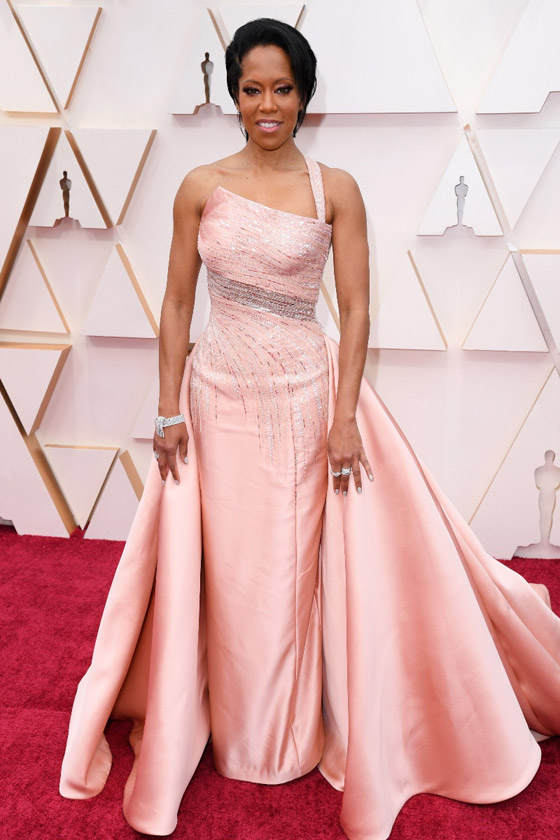 2- ريجينا كينغ: لفتت الأنظار بفستانها الرائع بلون زهري فاتح مع بعض التطريز الانيق باللونين الأحمر والفذي. نالت الاعجاب بدون شك..