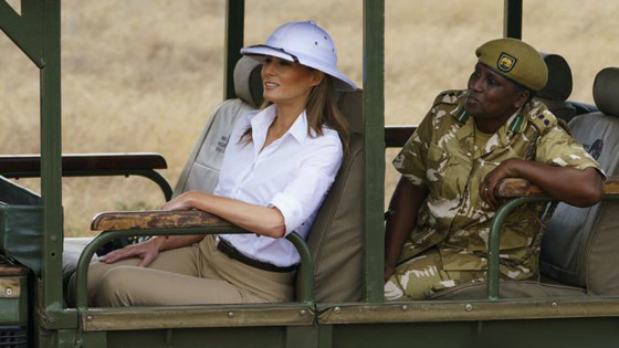 في كينيا ظهرت سيدة أمريكا الأولى ميلانيا ترامب وهي ترتدي قبعة بيضاء خلال رحلة سفاري في كينيا ما جعلتها عرضة للانتقادات بسبب ارتباط هذه الخوذة بماضي استغلال الأفارقة. وكان هذا هو نوع الخوذ يفضله المستعمرون الأوروبيون في القرن الـ19.