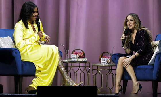 أثارت سيدة أميركا الأولى السابقة، ميشيل أوباما، جدلاً كبيراً خلال حضورها حدث ترويج كتابها "الوصول"، حيث ظهرت ميشيل بإطلالة غير مسبوقة نهاية العام الماضي. إذ ظهرت وهي ترتدي ثوباً حريراً طويلاً أصفر وحذاء عالي الساق بلون ذهبي براق من موضة تسعينيات القرن الماضي. وبلغت قيمته نحو أربعة آلاف دولار. وبات في المراتب الأولى لرغبات المتسوقين بعد أن أثار إعجاب الكثيرات.