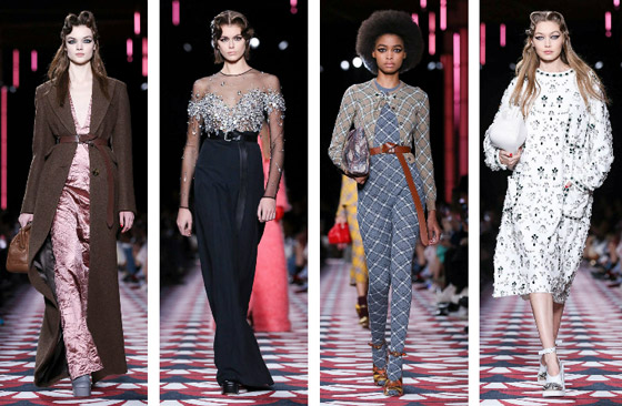 نقشة الكارو كانت بارزة، وكذلك نقشة جلد الفهد، ولوحة الألوان تنوعت بين الدرجات الحيادية مثل الرمادي والأسود والأبيض ودرجات الباستيل الهادئة، مع تواجد للأحمر الحيوي على بعض التصاميم. وقد شاهدنا على منصة العرض العديد من ملهمات الدار من ممثلات ومغنيات، إضافة إلى أكثر عارضات الأزياء شهرة، مثل: جيجي وبيلا حديد، كايا جربرKaia Gerber، ناتاشا بوليNatasha Poly ، وغيرهن.
