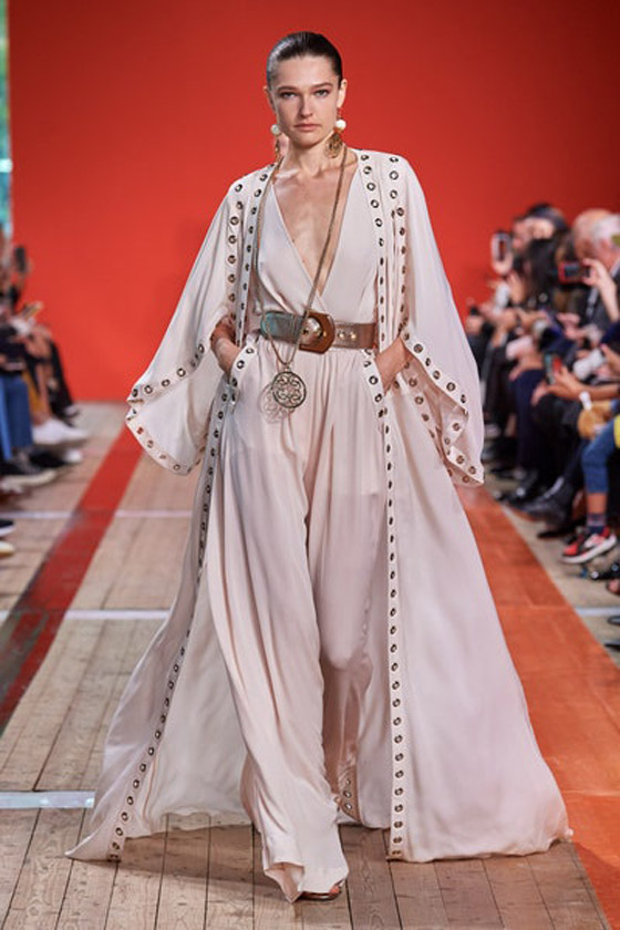 ظهرت القفاطين مستوحاة من عالم السفاري، جامعةً بين الأناقة وروح المغامرة، على منصة إيلي صعب Elie Saab لربيع 2020. فقد لاحظنا ذلك من خلال لوحة الألوان المعتمدة والتي تراوحت بين الوردي الباهت والأخضر والأصفر؛ إضافةً إلى القصات الواسعة المتنوعة والعصرية. فلاحظنا القفاطين بالكسرات والأخرى المزركشة بالتطريزات، كما وجاء بعضها الآخر بتصميم الكاب الراقي.