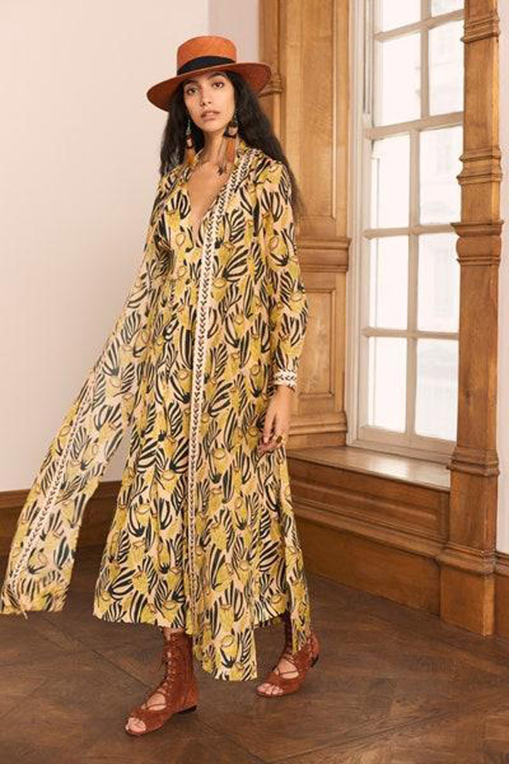قفطان مؤلف من قطعتين باللون الأصفر بالنقشات من تمبرلي لندن Temperly London