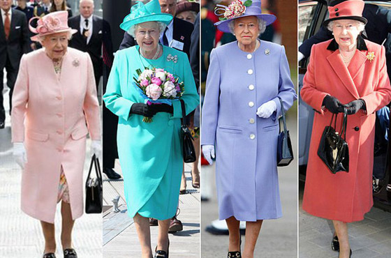 الألوان الساطعة: تعتمد الملكة إليزابيث الثانية دائمًا على الألوان الزاهية والنيون، فاعتقد الناس أنها تحب تلك الألوان ولكن تم اكتشاف حقيقة الأمر، والمقصود من اختيارها بأن تجعل المكلة ظاهرة في الحشود، بحسب ما قالت كونتيسة ويسيكس: "ليتمكنوا الناس من قول رأيت الملكة".