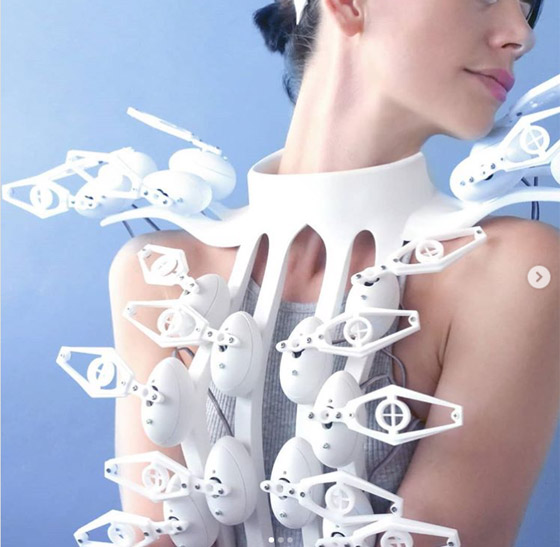 وتشتهر أنوك ويبرخت بتصميماتها المستقبلية، إذ صمَّمت سابقاً "فستاناً عنكبوتياً" يضم أطرافاً ميكانيكية متحركة تحاكي أرجل العناكب، وتوخز أي شخص يقتحم المساحة الشخصية لمرتدي الفستان.