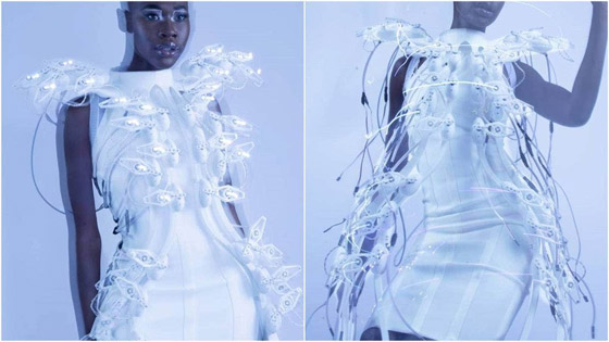أفاد موقع نيوزيلندي بأن مصمِّمة هولندية نجحت في تطوير ملابس تتمكن من قراءة الأفكار الداخلية والتعبير عنها. المصممة أنوك ويبرخت سمَّت تصميمها بـ"فستان بانجولين" -وبانجولين هو المقابل الإنجليزي لحيوان آكل النمل الحرشفي- وهو رداء ثلاثي الأبعاد مُغطَى بأكثر من 1000 أجهزة استشعار لتخطيط كهربية الدماغ تتصل بمخ مرتدي الفستان.