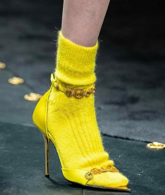 لم تنسى الموضة والتصميمات غير التقليدية الجوارب وبدأ مؤخراً الظهور لعدد من الأشكال غير المألوفة. ويبدو أن ارتداء الجوارب مع الحذاء ذو الكعب العالي نال إعجاب الكثير وسيظل فترة طويلة ضمن الإطلالات الرائجة في عالم الموضة. تم صناعة جوارب باللون الأصفر الفاقع وارتدائها على الحذاء المفتوح مما قد يغير من شكل الإطلالة وقد يضفي عليها بالجمال والأناقة التي لا مثيل لها.