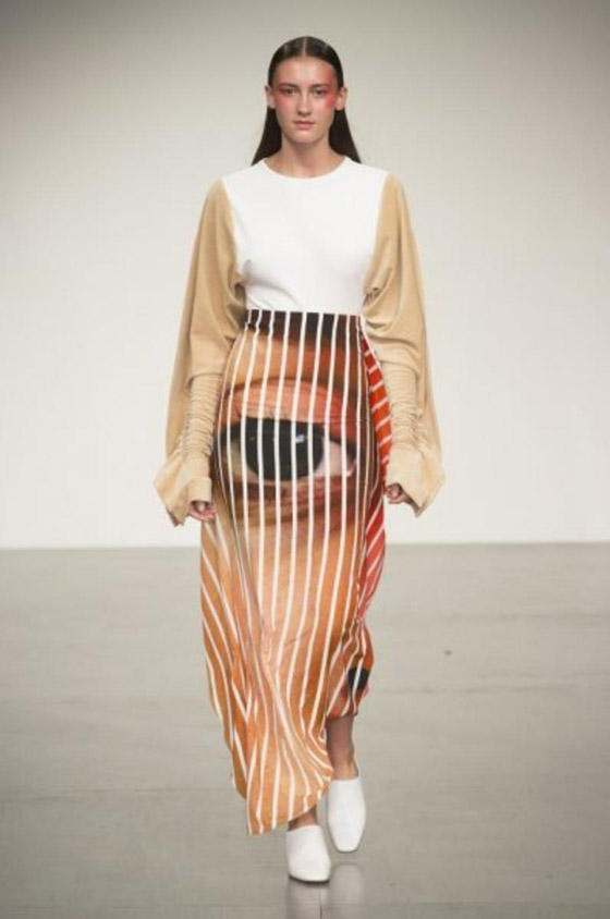 في لفتة جريئة قامت فتاة بارتداء تنورة متعددة الألوان ورسم عليها عين بشرية مع بلوزة بيضاء وأختارت دار الأزياء أن تطل العارضة بشعر مفرود كنوع من التشجيع للفتيات ارتداء مثل هذه الأزياء في الحياة اليومية. كما ظهرت فتاة أثناء عرض للأزياء بشكل غير مألوف وزي غريب أشبه بالفساتين الريفية ولكنه مزدحم بالألوان الجريئة حيث احتوى على اللون الأصفر والفوشيا والأسود ويظهر البنطلون باللون الوردي من تحت الفستان.