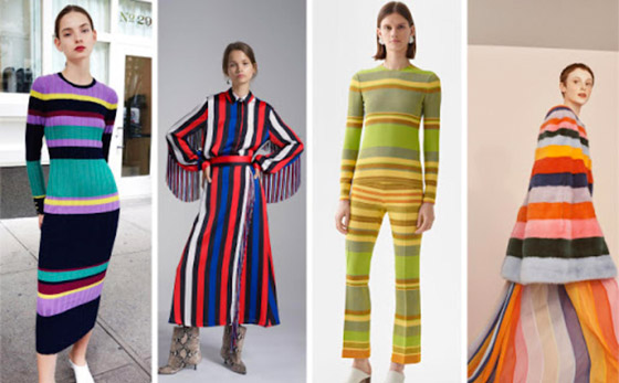 كما أظهر العرض مجموعة من الفتيات ترتدي ملابس مخططة بخطوط عرضية وألوانها جريئة ما بين اللون الأصفر والبرتقالي والأحمر. وأيضا ضم عارضة بفستان ملون وشعر مفرود لعرض ملابس بالألوان الجريئة.