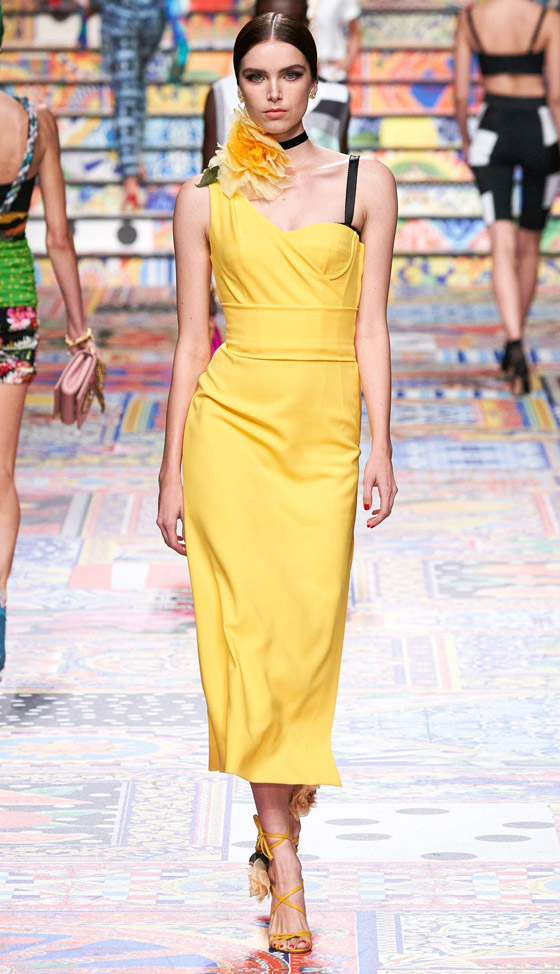 1- الألوان المبهجة: تزرع الألوان المشرقة لمسات من الفرح في أيامنا التي تعيش على إيقاع الوباء. وهي تشكّل مصدراً للحيوية والمرح نحتاج إليه أكثر من أي وقت مضى، وقد حرصت دور الأزياء العالميّة على الاستعانة بالألوان المشرقة في مجموعات ربيع وصيف 2021 لإضافة لمسات من الإيجابيّة على حياتنا. لفتتنا دار Balmain ببدلاتها ذات الألوان النيونيّة، أما دار Dolce&Gabbana فاستعانت باللون لتجسيد مفهوم "حب الحياة". وقد تكرر ظهور الألوان المعززة للشعور بالفرح والنشاط في مجموعات Valentino، وStella McCartney، وBottega Veneta.