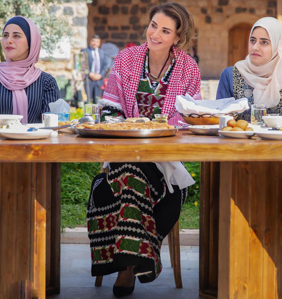 الملكة رانيا تتميز بأسلوبها الخاص في ارتداء الثوب الأردني:
