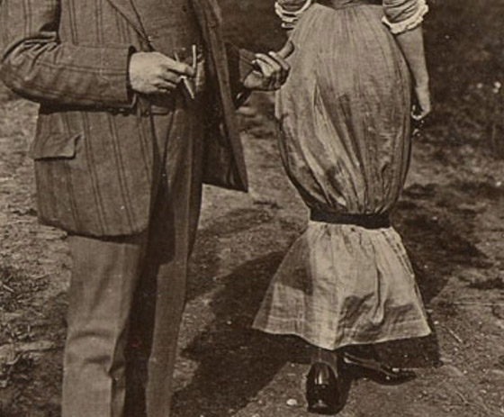 كانت التنورة المتعرجة شائعة في عام 1910، وكانت النساء على استعداد للتعبير عن حريتهن في الموضة من خلال التخلص من الاتجاهات التي كانت تكبلهن في الماضي. لقد تلاشت طبقات التنانير الداخلية والأطواق الكبيرة والنسيج الإضافي، وبمجرد أن شقت التنورة طريقها من باريس إلى الولايات المتحدة، أصبحت فضيحة الموضة، حيث رسم رسامو الكاريكاتير رسومًا كاريكاتورية لنساء يحاولن المشي في التنانير المقيدة، التي لا أحد يعرف من اخترعها، لأن الجميع أراد أن ينسب الفضل إليه.