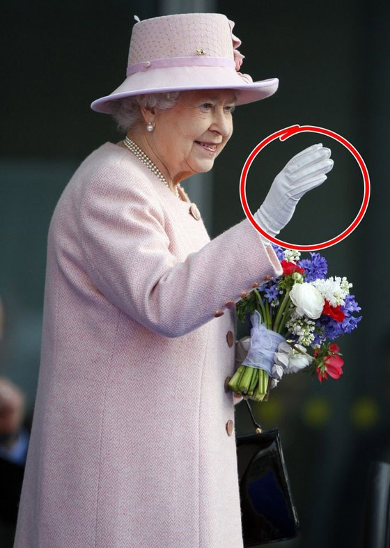 تشتهر الملكة إليزابيث الثانية، أيضاً، بارتداء القفازات البيضاء الكلاسيكية، وبالإضافة إلى شكلها الجمالي، تساعد أيضًا في حمايتها من المصافحات التي تكون جزءًا من المناسبات العامة. وعلى جانب آخر، خالفت الأميرة ديانا تقليد ارتداء القفازات؛ لأنها أرادت أن تكون على اتصال مباشر بالأشخاص الذين تصافحهم.
