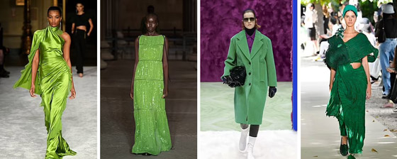 لقطة من العشب الأخضر المورق كما شوهدت في ستيلا مكارتني بعد سنوات من الكاكي والزيتوني، وكأنه نسمة من هواء الريف المنعش. ويتمتع اللون الأخضر الحشيشي بإشراقة وحيوية تجعلنا نتطلع بالفعل إلى الربيع.