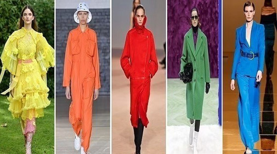 أشارت تقارير معهد Pantone Color Institute إلى عودة الألوان الزاهية في أزياء الخريف لهذا العام، حيث سيكون الموسم مغموراً بلوحة من الأخضر العشبي، والبرتقالي النابض بالحياة، وأزرق الكوبالت، والأصفر الساطع والأحمر.