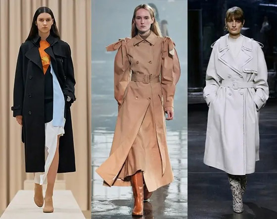 ظهر معطف الترينش أو المعطف الواقي من المطر على منصات عروض أزياء خريف وشتاء 2021، فهو من القطع الخفيفة لكنه يحمي من المطر بشكل كبير. والملفت للنظر أن جميع دور الأزياء العالمية قدمت موديلات حديثة من هذا المعطف الكلاسيكي الذي لا يختفي من الموضة خاصةً وأن ألوانه غالباً ما تكون حيادية مثل تدرجات البني والبيج والأسود.