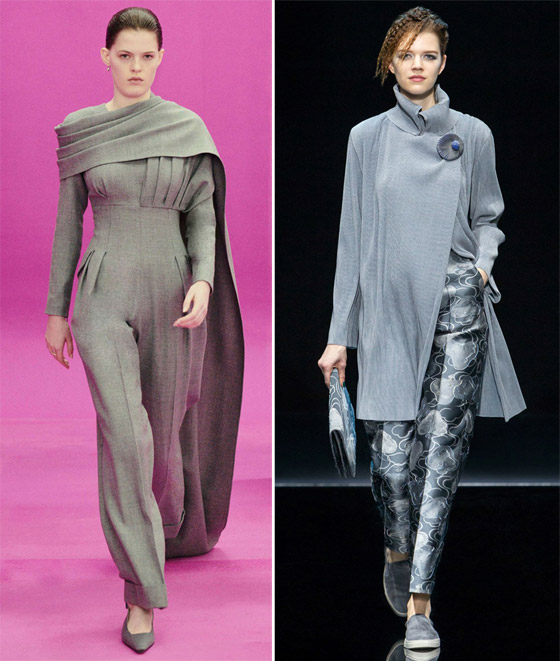 يحتل المرتبة الرابعة في قائمة الألوان الأكثر تنحيفاً رغم كونه يُعتبر مملاً من جانب الكثيرين. كما يُنصح باعتماده بتدرجاته المتوسطة أو الداكنة وتنسيقه مع أكسسوارات ملونة لإضفاء بعض الحيوية على الإطلالة. ويعتبر الرمادي لوناً محايداً ممكن أن يُشكل بديلاً مثالياً للأسود أو الكحلي وهو مناسب للأزياء المخصصة لأوقات العمل. ولفتنا هذا الموسم اعتماده في مجموعات Emilia Wickstead وGiorgio Armani.