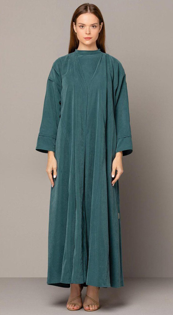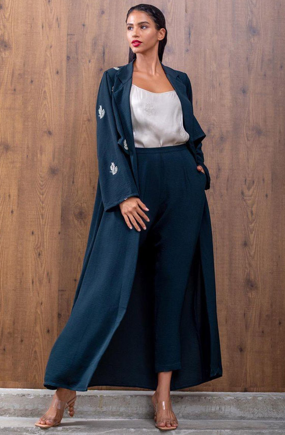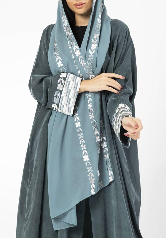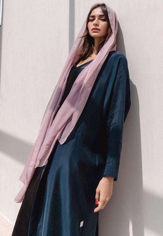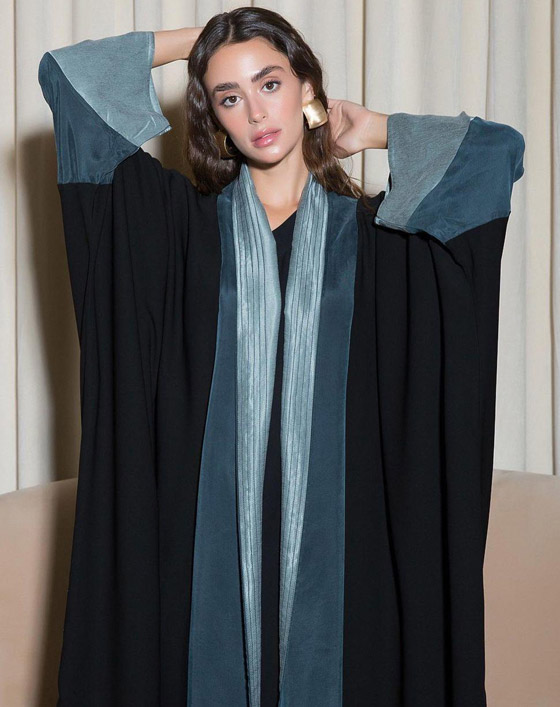 لاحظنا سطوع نجم العبايات باللون الأزرق البترولي، وجدناها لدى ماركة تاء مربوطة Ta Marbota منسقه مع فستان أسود وطرحة باللون الليلك، كما أحببنا العباية المطرزة بالأبيض على الأكمام من مجموعة إندماج Endemage، لائميها مع توب أبيض وبنطال باللون الأزرق البترولي وصندال شفاف.