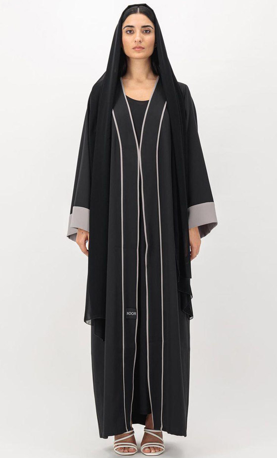أحرصي على تجديد خزانتك بعباية أو أكثر باللون الأسود، رصدنا لدى ماركة Soleil عبايه مصممه بياقات وأساور بنية اللون نسقيها مع فستان واسع باللون الأسود وانتعلي حذاء باللون البني الداكن، أما العبايه السوداء المزينه بتفاصيل رمادية فاتحة نسقيها مع فستان باللون الرمادي على أن يكون الحذاء وحقيبة الكتف باللون الأسود.