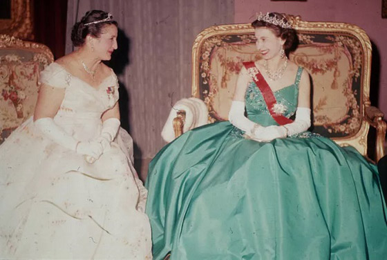 8- عام 1957 اختارت الملكة إليزابيث اللون الأخضر لزيارة سيدة فرنسا الأولى جيرماين كوتي وكان ثوبها شديد الفخامة مع تنورة منتفخة وصدر مشكوك بالخرز.
