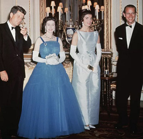 10- عام 1961 اختارت اللون الأزرق وفستان أنيق خلال زيارة قام بها الرئيس جون كندي وزوجته جاكلين كندي.