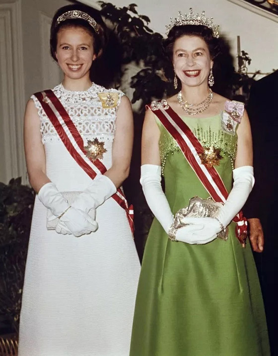 12- عام 1969 زارت الملكة النمسا برفقة الأميرة آن وقد اختارت فستانا بقصة A ضيقة في الأعلى تتسع قليلا في الأسفل من تصميم هاردي أميز Hardy Amies.