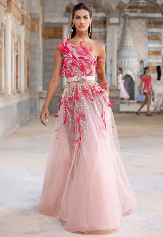 - مع الوردي: يمكن الخلط بين عدّة تدرجات من الوردي في إطلالة واحدة، والنتيجة تكون في هذه الحالة أنثويّة ومُميّزة. يمكن أيضاً اعتماد التدرّج نفسه من الوردي لكامل الإطلالة شرط أن يكون التصميم بسيطاً في مجال القصّات ليحافظ على أناقته.