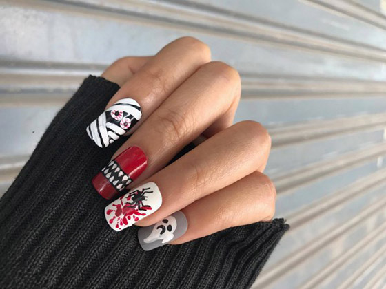 ليس هناك وقت للإبداع أفضل من شهر أكتوبر، والاحتفال بعيد الهالوين، للاستمتاع بالإطلالات المُرعبة، بجانب اعتماد رسومات الأظافر الغريبة والمخيفة. إذا كنتِ قد بدأت التحضير لإطلالتكِ في يوم الهالوين، لا تنسي اعتماد أظافر مختلفة وغريبة، لا تتمثل باللونين البرتقالي والأسود فقط، لأن هناك العديد من التصاميم والأفكار التي يمكنكِ تطبيقها على أظافركِ لاستكمال إطلالتكِ المرعبة. بجانب رسومات اليقطين البرتقالي على الأظافر السوداء، يمكنكِ التغيير واللجوء إلى العناكب والأشباح المخيفة وقطرات الدماء، حاولي أن تخرجي عن المألوف وتبدعي في تصاميم أظافركِ في يوم الهالوين.