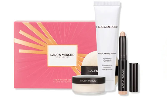 إذا كنتِ تفضلين استخدام علامة تجارية واحدة، فستكون مجموعة المكياج هذه أفضل رهان لكِ. تأتي مجموعة Laura Mercier The Wish List Set مع 5 منتجات عالية التصنيف: بودرة تثبيت سائبة نصف شفافة، مع اسفنجة مخملية Velour Puff، مرطب برايمر نقي، وقلم ظل العيون كافيار بلون الذهب الوردي الدولوكس.