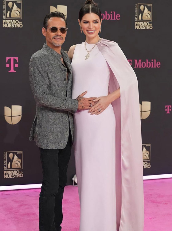 اختارت العارضة ناديا فيريرا Nadia Ferreira زوجة النجم مارك أنطوني الظهور بفستان من الكريب الحريري الزهري الباستيل مع كاب يغطي الكتفين من دار صفية Safiyaa. وقد سرحت شعرها على شكل شينيون وتزينت بقلادة ماسية وأقراط هندسية التصميم مرصعة بالماس من دار بولغاري Bulgari.