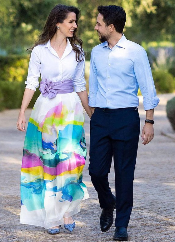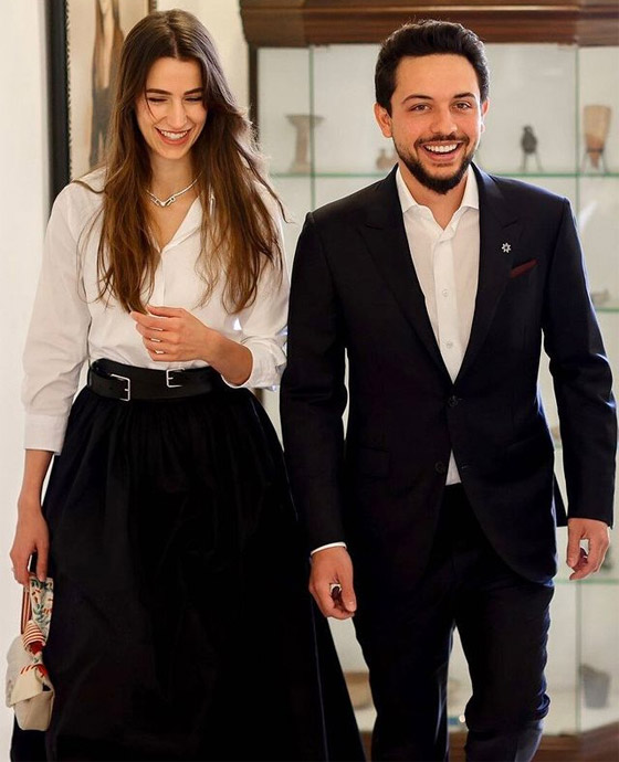 - وفي احدى اطلالاتها برفقة الأمير الحسين بن عبدالله الثاني، اختارت رجوة آل سيف إطلالة من ألكسندر ماكوين عبارة عن التنورة الكلوش السوداء مع القميص الأبيض الناعم.