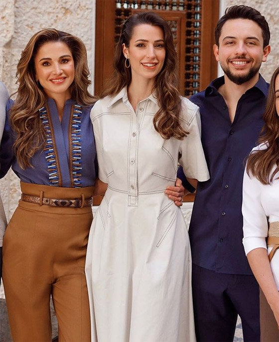 - أما في إطلالة أخرى لها مع العائلة المالكة الأردنية، تألقت فيها رجوة بفستان بيج بلمسات بسيطة وناعمة من دار Rosetta Getty العالمي.