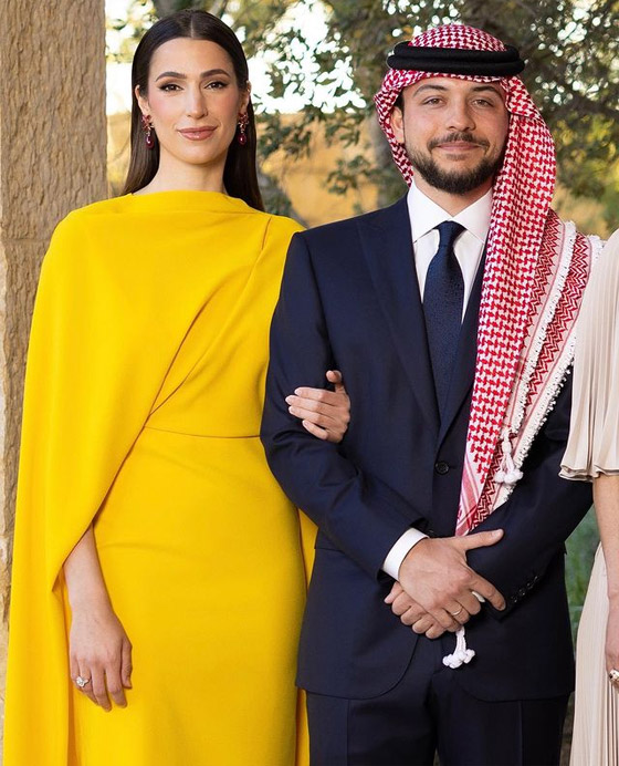 - كما تألقت رجوة في حفل زفاف الأميرة إيمان بإطلالة صفراء اللون لفتت أنظار العالم بتصميمها الناعم الراقي حيث اختارتها من Roksanda.
