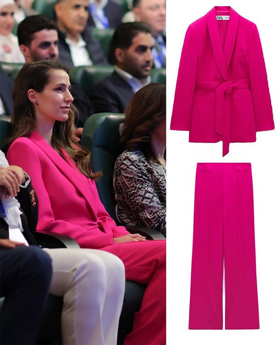 5- تحب المزج بين الماركات الراقية والعصرية وتهوى شراء بدلات من ماركات مثل زارا Zara كما حصل عندما أطلت ببدلة من الكريب بلون الماجنتا والتي تتألف من سروال واسع مستقيم وسترة ضيقة وطويلة بطابع مونوكروم راق.