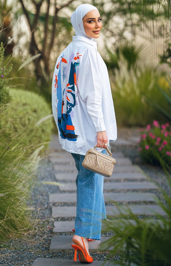 يعد الحجاب الأبيض من أكثر ألوان الحجاب التي تتناسب مع أغلب ألوان الأزياء، فهو لون ناعم وبسيط، ويمنح اطلالتك حيوية ورقي، وخاصةً اذا كانت الأزياء بألوان داكنة. يمكن تنسيق الحجاب الأبيض مع ازياءك اليومية لتحصلي على اطلالة عصرية مثل الفاشينيستا دلال الدوب.