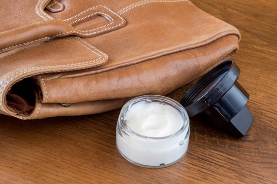 يتطلب الجلد الفاخر قدراً أكبر من العناية، أكثر من مجرد إبقائه خالياً من الأوساخ، والسر الذي يجعله يبدو رائعاً لأطول فترة هو الحفاظ عليه ناعماً وليناً ورطباً. وللقيام بذلك، اشتري مرطباً جلدياً عالي الجودة، وضعيه على قطعة قماش ناعمة، ثم امسحي حقيبة يدك به مع حركات دائرية لطيفة، وانتبهي بشكلٍ خاص إلى الزوايا والحواف، التي يمكن أن تكون عرضة بشكل خاص للتآكل. وبمجرد تطبيقه، اتركيه لبضع ساعات، للسماح له بالقيام بعمله، وكرري العملية مرة أخرى كل شهر، أو شهرين لمنع التشققات.